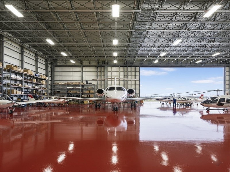 An aircraft hangar is where various aircraft are stored and serviced. These may include jets, helicopters, gliders, commercial or corporate planes, and more. Not only must aircraft hangar flooring be extremely durable and able to withstand extremely heavy loads, but these floors should also be chemical and stain resistant in anticipation of chemical spills.