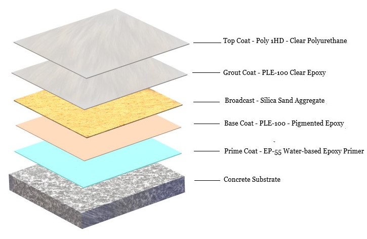Aircraft & Equipment Hangars – Shop epoxy systems perform well in smaller hangars and maintenance bays where chemical resistance, cleanability, and traction control are key. They can be paired with line striping and safety markings for defined work zones.